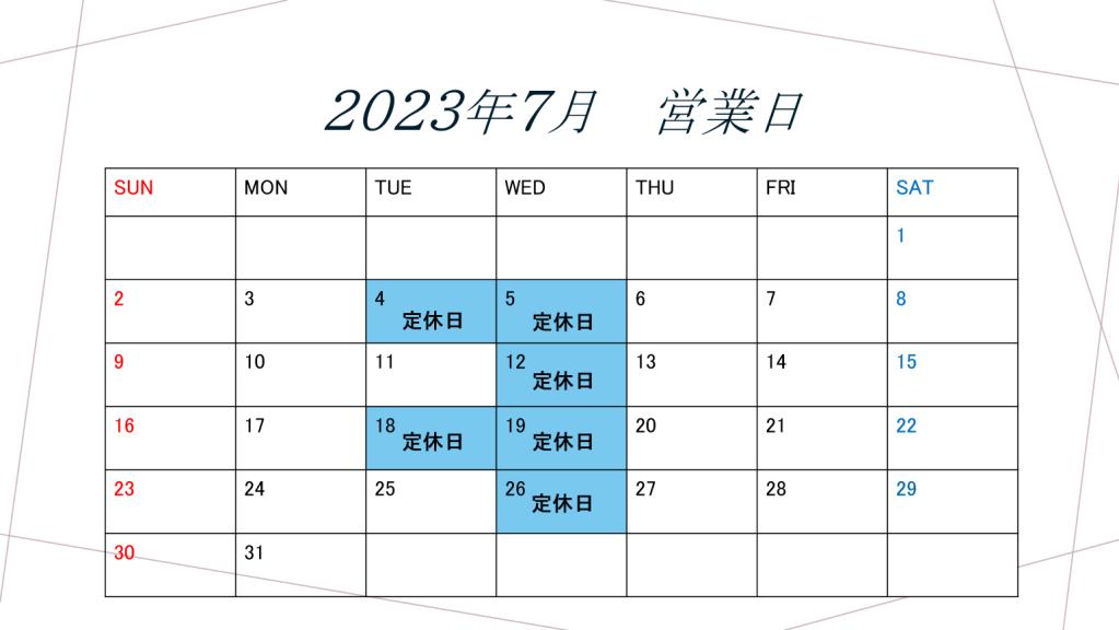 誠に勝手ではございますが、令和5年9月より毎週火曜日・水曜日を定休日とさせて頂きます。